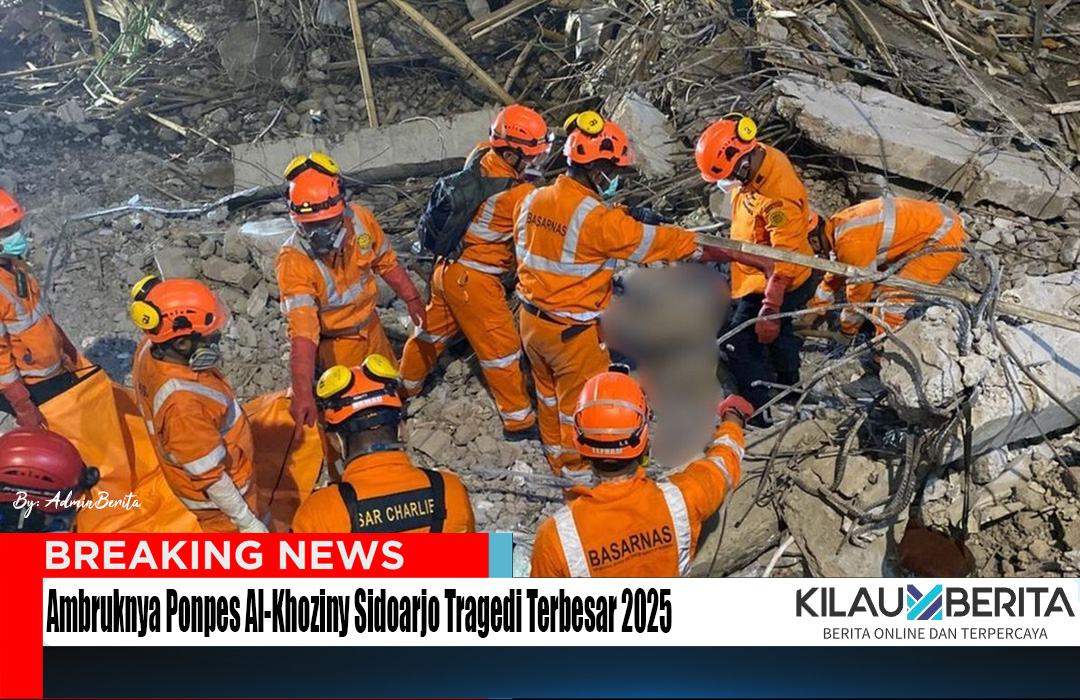 KilauBerita – Badan Nasional Penanggulangan Bencana (BNPB) menetapkan peristiwa Ambruknya Ponpes Al-Khoziny bangunan Pondok Pesantren di Sidoarjo sebagai bencana non-alam terbesar tahun 2025. Kejadian memilukan yang menelan puluhan korban jiwa itu kini menjadi fokus nasional, sekaligus peringatan keras terhadap pentingnya standar keselamatan dalam pembangunan fasilitas pendidikan dan keagamaan di Indonesia.